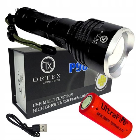 LATARKA SZPERACZ METALOWA BARDZO JASNA MOCNA CREE XHP90 AKUMULATOR USB