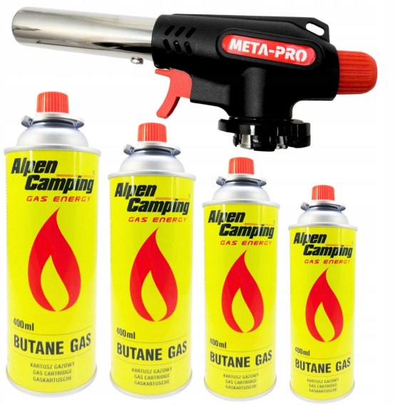 W zestawie otrzymasz Palnik oraz 4szt. Gazu kompatybilnego z palnikiem.